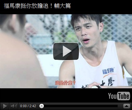 此次贊助,福馬康特別請了專業導演,進行影片宣傳拍攝,過程很圓滿,大家也相處愉快,另一個贊助學校是輔仁大學籃球隊,福馬康也把這定調為二所大學間的對抗,特別辦了一個網路對抗賽,除了二所學校的宣傳影片外,還設計了投票遊戲,每日、每人可投一票,12/27活動截止後,將會依據投票資料抽出中獎人,贈送的獎品有:7-11禮券$300x20份、福馬康®人蔘維他命30顆裝x10份。趕快把握住機會,隻需要動動滑鼠,就有機會獲得優質獎品,按此前往。Simidude